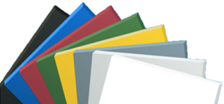 Vanlig standard på lager er klare plater i ulike tykkelser. Gjennomfargede i hvit og sot